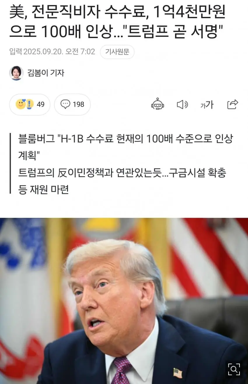 트럼프, H-1B 비자 수수료 100배 인상 서명