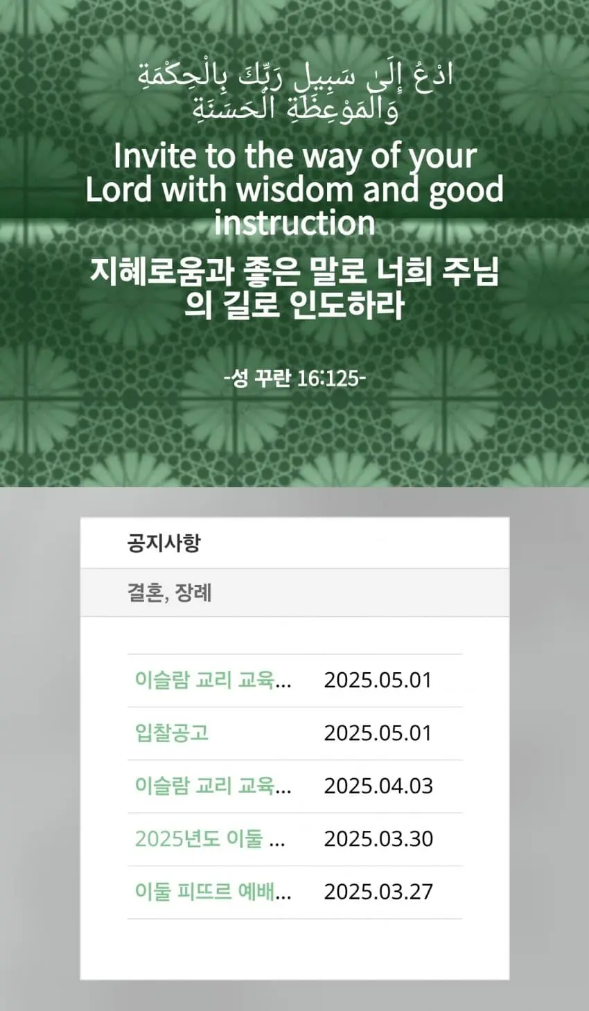 중심 사이트는 '햔국이슬람교'이고