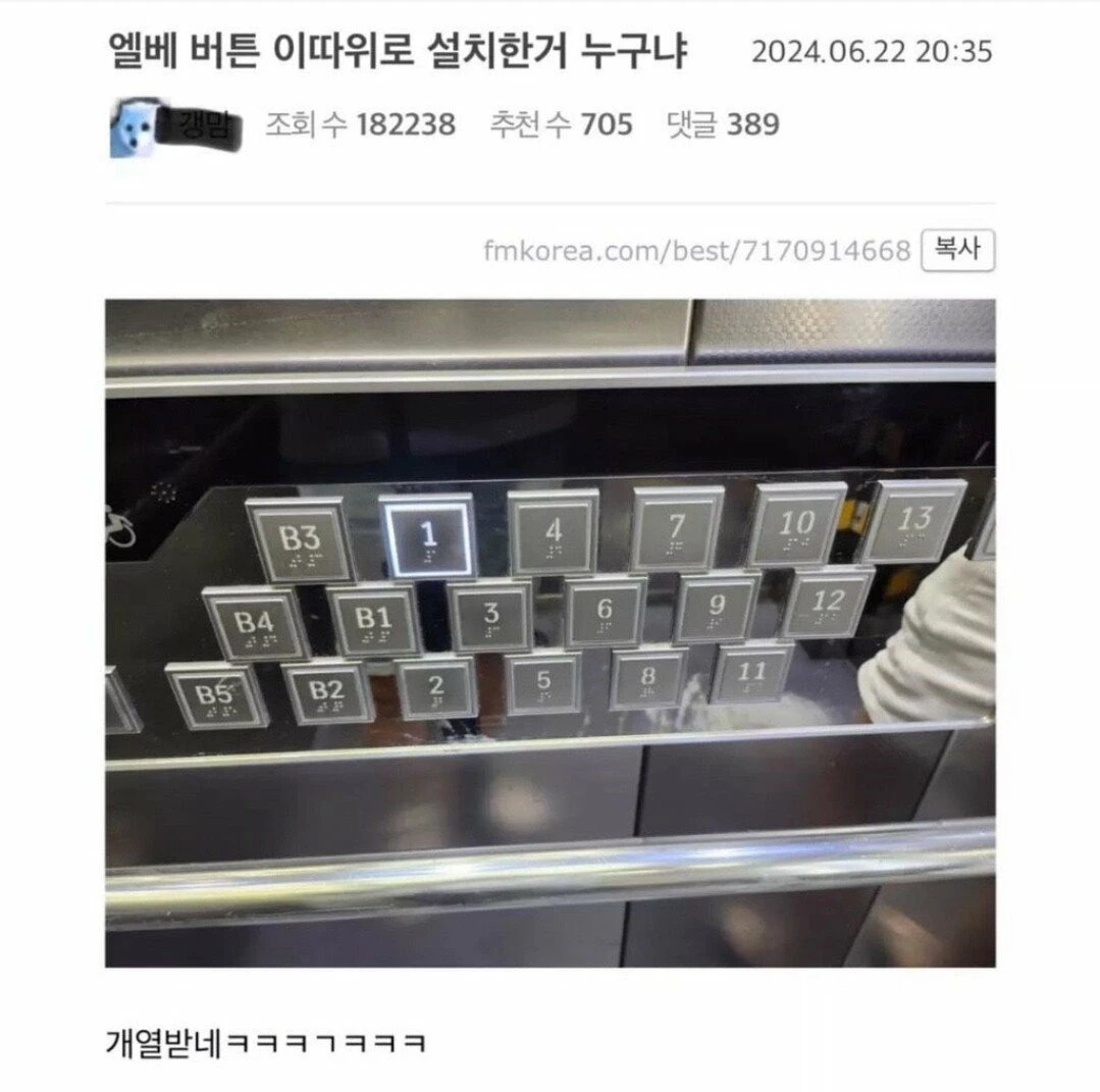 엘베 버튼 이따위로 설치한거 누구냐??