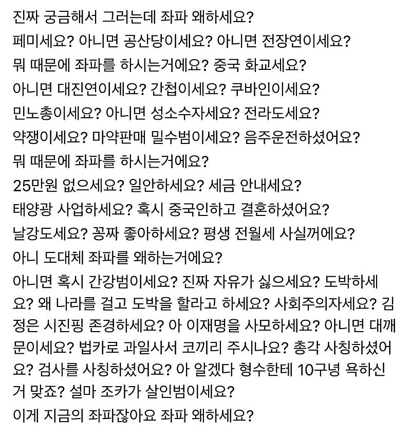진짜 궁금해서 그러는데 좌파 왜하세요?