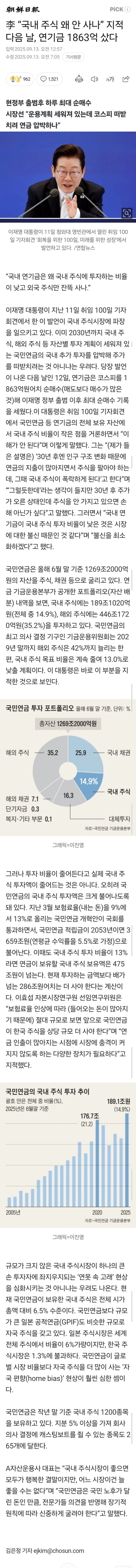 찢 “국내 주식 왜 안 사나” 지적 다음 날, 연기금 1863억 샀다