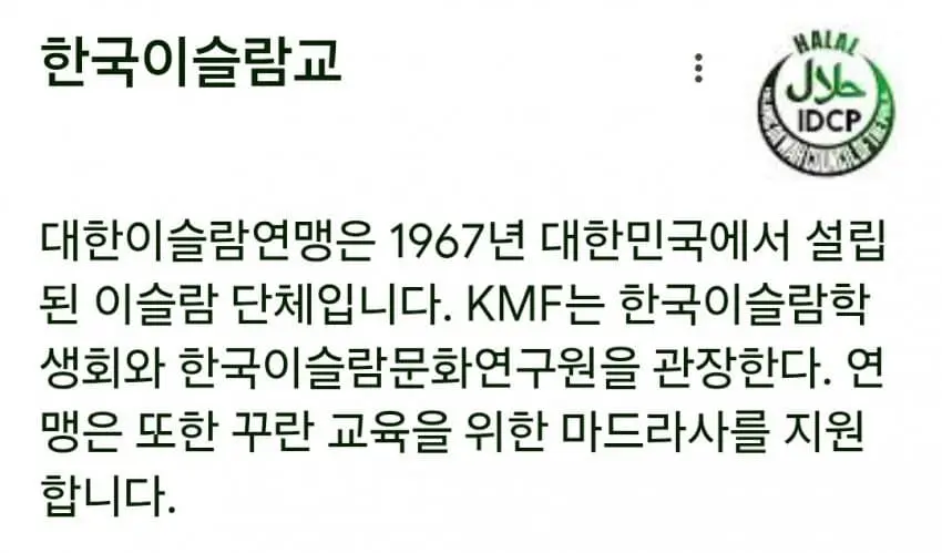 중심 사이트는 '햔국이슬람교'이고