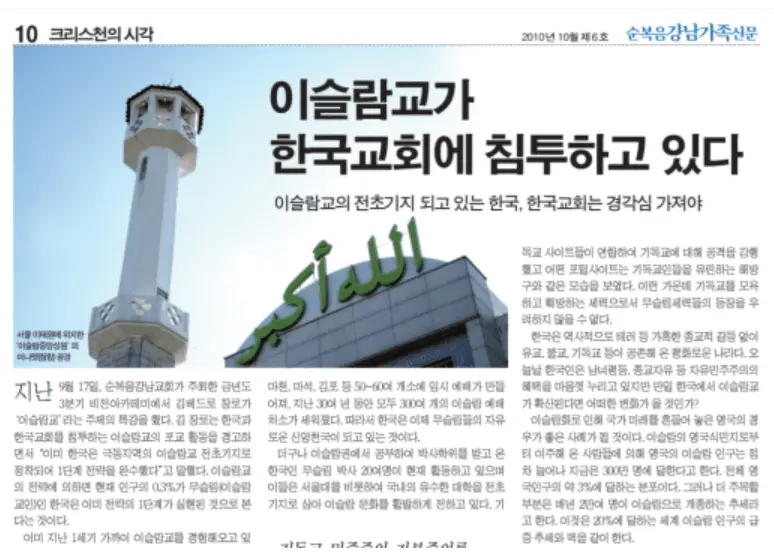 이슬람교를 매우 경계하는 한국 기독교 ㅋㅋ